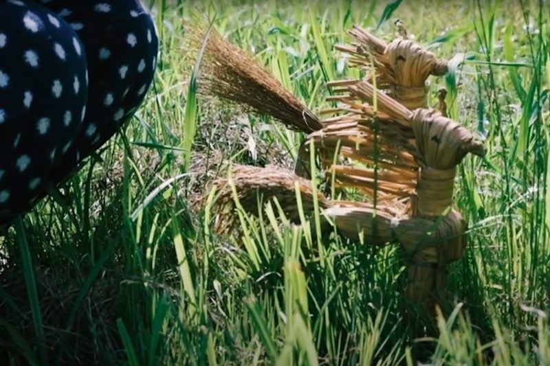 北上山地周辺の農村に伝わる、豊作を祈願する行事。藁で作った馬(藁馬)を田んぼの水口、井戸、道の分かれ等に供え、「馬の積んでも積みきれない程の穀物がたまりますように」「水の過不足がないように」と願う。お供えした藁馬に田の神様が乗り、作柄を見て回るといわれている。