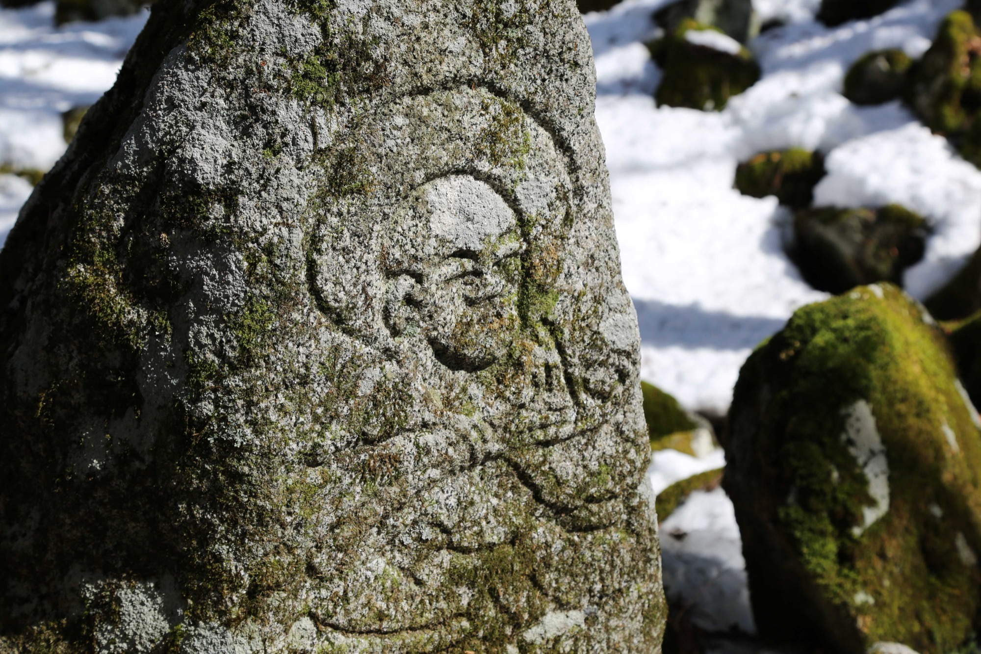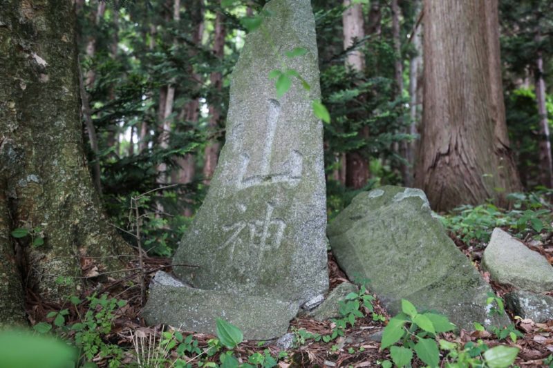 Prayer for mountains: Tōno is a small basin surrounded on all sides by mountains that possess a presence beyond human understanding. A place where souls return, a sacred site of spiritual power. Blessings such as game and wild vegetables are offered, whilst dangerous beasts like wolves and bears dwell there, often claiming human lives. Mountains have their own deity, sometimes appearing as a woman refusing entrance to other females, or taking the shape of red-faced, rugged men with an axe in hand. Just as people held varied impressions of mountains, the mountain deity visited in various forms. If you walk through Tōno, you will find stones inscribed with Yama-no-kami (mountain god) in many places.