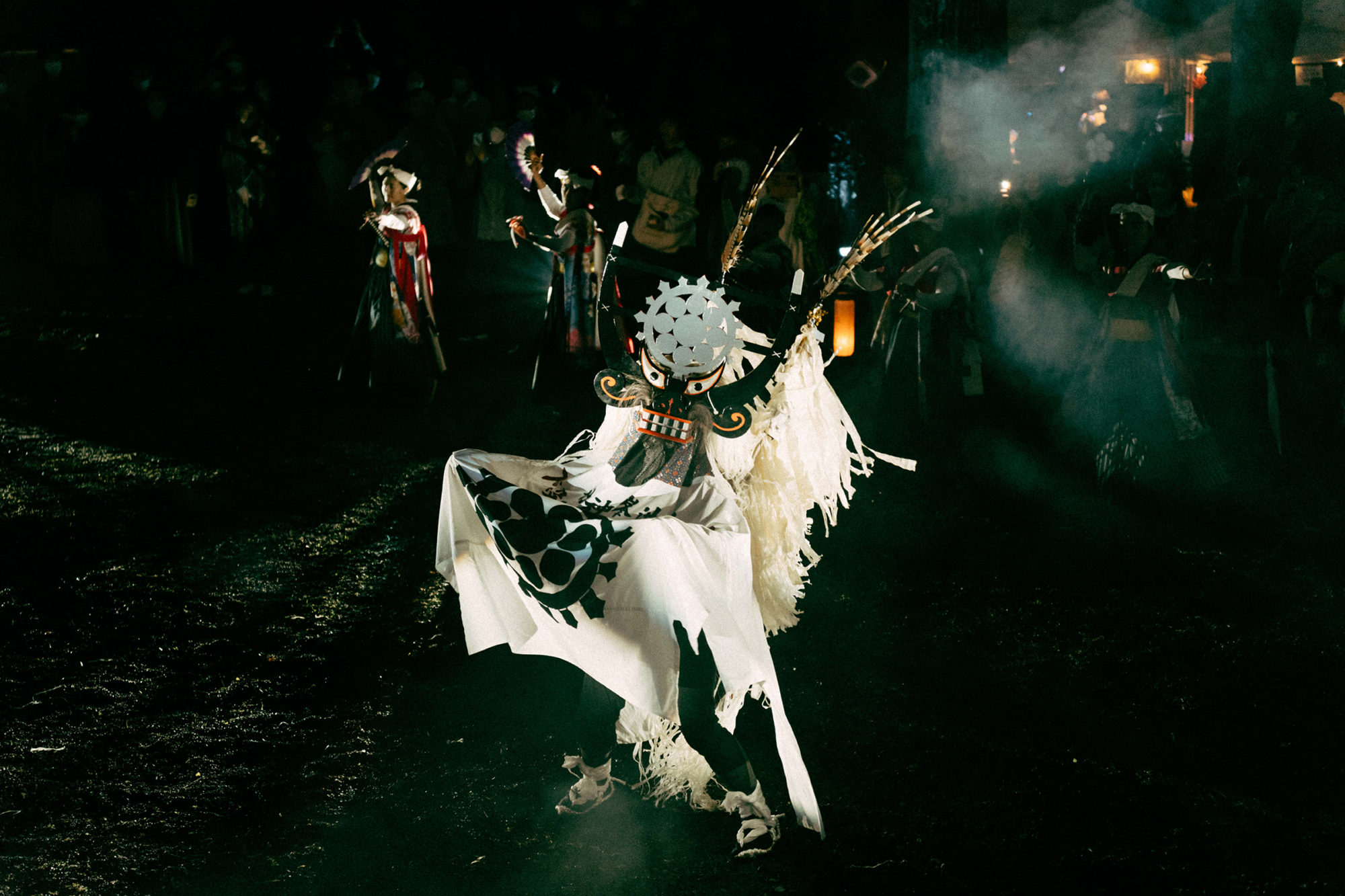 Shishi Odori is a folk tradition that has been performed for over 400 years in Tōno and across the broader Tōhoku region of northeastern Japan. Today, twelve groups remain active within Tōno City. A mystic beast, Shishi, and a human wielding a sword, Tachi, swirl and dance to the sound of drums and flute. The dance is said to express the history of conflict and harmony between nature and humanity, with movements that suggest play, combat, confrontation, and twirling, culminating in a symmetrical dance. Shishi Odori teaches us that nature cannot be controlled, but rather must be learnt from and harmonised with.